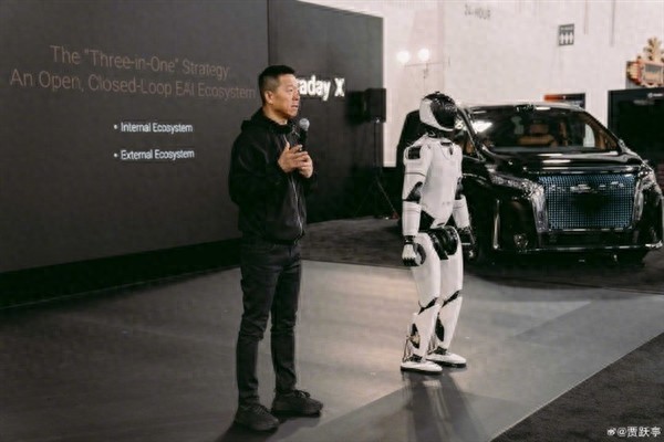 此外,贾跃亭还在社交平台上发布了一段20秒的展示视频,展示了人形机器人与四足机器狗的实际动作表现和能力。